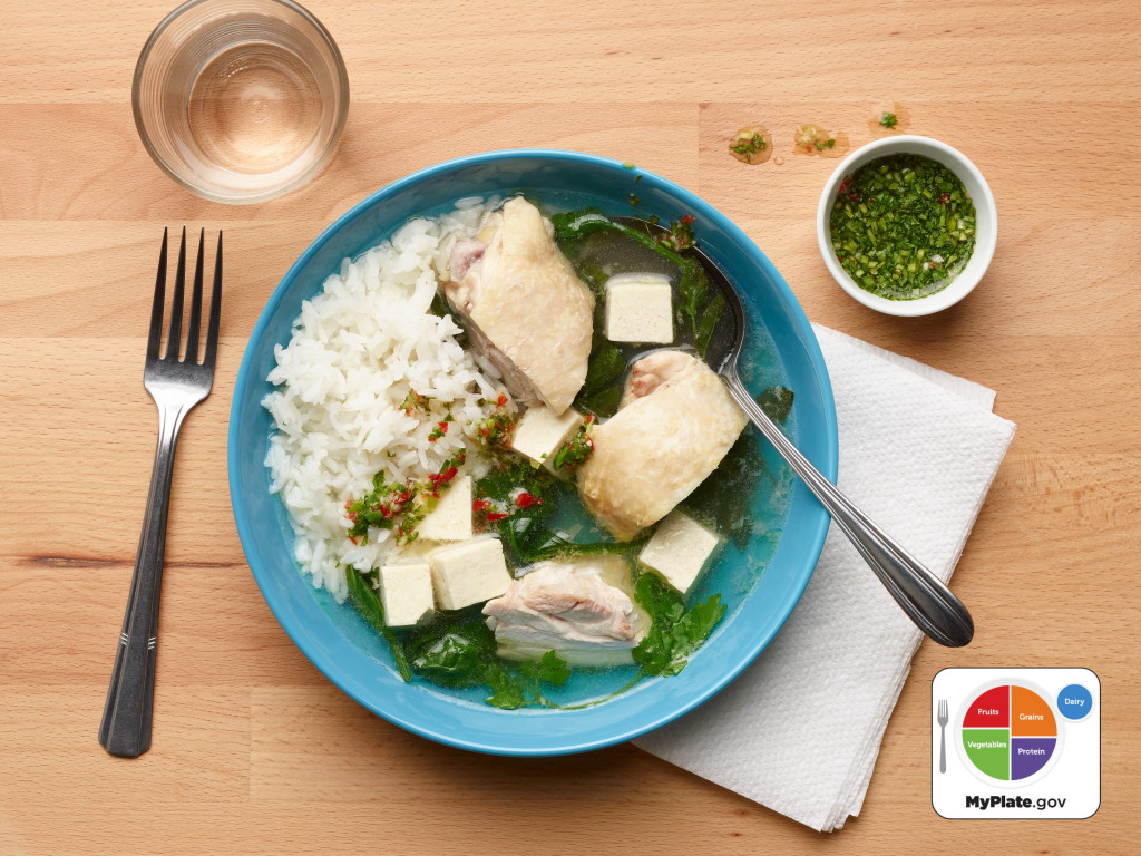 Nqaij Qaib Hau is a traditional Hmong soup made with fresh whole chicken and tofu. This wholesome chicken soup tastes even more delicious if made with herbs, like lemongrass, Artemisia lactiflora (white mugwort), or Okinawa spinach, and can be enjoyed by people of all ages.