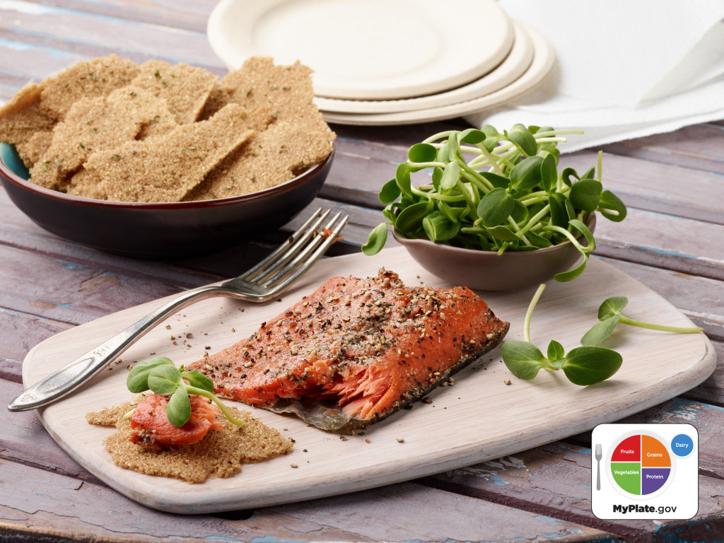 This dish highlights a simple homemade cracker using an Indigenous grain and topped with a tasty chunk of smoked salmon. The type of fish and smoking process vary based on geographical region. Use a favorite family recipe or prepackaged, or canned smoked fish. Amaranth has been cultivated for over 8,000 years and was considered a staple crop of the Aztec Empire.